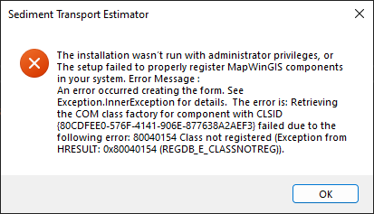 This error usually means that : The installation wasn’t run with administrator privileges, or The setup failed to properly register MapWinGIS components in your system. To fix this: